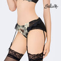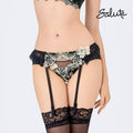 - Đai kẹp tất với chi tiết hoa tô điểm ở phần eo, giúp tôn lên nét quyến rũ như những ngôi sao màn bạc.